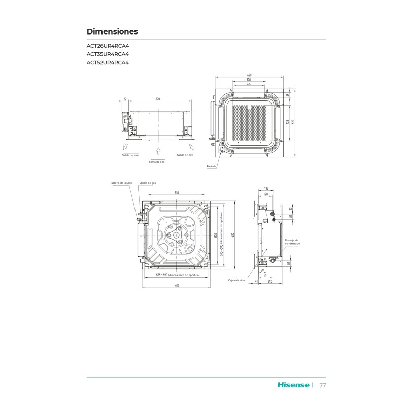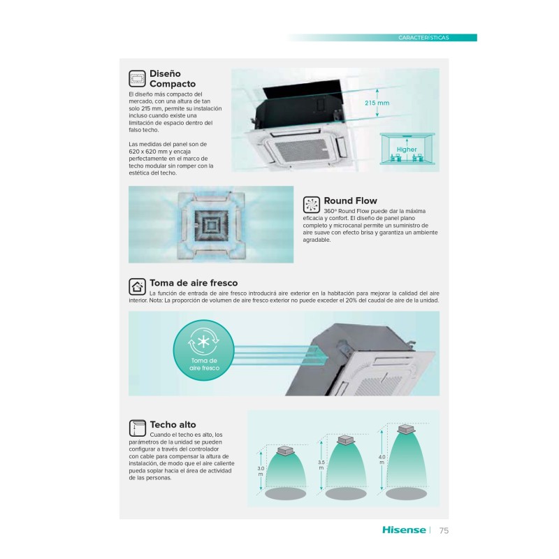 El Aire Acondicionado Hisense Cassette ACT52UR4RCA4 es un equipo ideal para regular el clima interno de cualquier recinto, de gran tamaño o pequeño. Como fabricante líder en tecnología de inverter para aire acondicionado satisfacemos las demandas de los usuarios con sistemas de alta calidad, con tecnología de vanguardia. Este modelo de cassettes inverter de Hisense ofrece un rendimiento extraordinario, con un nuevo diseño de ventilador de vórtice. Está equipado con la innovadora tecnología 3DC para reducir los niveles de ruido del compresor.