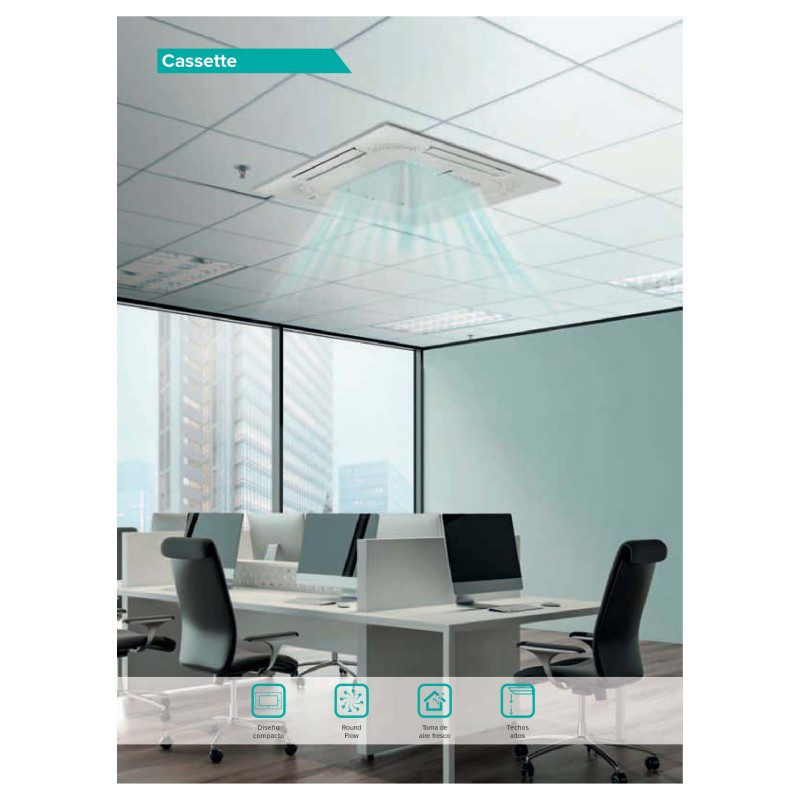 El Aire Acondicionado Hisense Cassette ACT52UR4RCA4 es un equipo ideal para regular el clima interno de cualquier recinto, de gran tamaño o pequeño. Como fabricante líder en tecnología de inverter para aire acondicionado satisfacemos las demandas de los usuarios con sistemas de alta calidad, con tecnología de vanguardia. Este modelo de cassettes inverter de Hisense ofrece un rendimiento extraordinario, con un nuevo diseño de ventilador de vórtice. Está equipado con la innovadora tecnología 3DC para reducir los niveles de ruido del compresor.