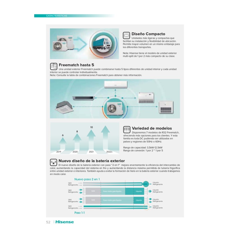 Este moderno aire acondicionado Hisense AUV52UR4RFA4 es un modelo Suelo-Techo de alto rendimiento. Posee una capacidad de 5.2kw, lo cual es ideal para habitaciones de hasta 50m2. Está equipado con la clasificación energética A++/A+ y cuenta con la avanzada tecnología Inverter. Además, funciona con el novedoso gas refrigerante R32.