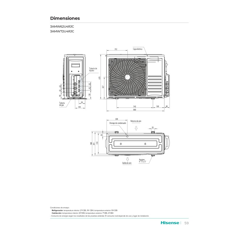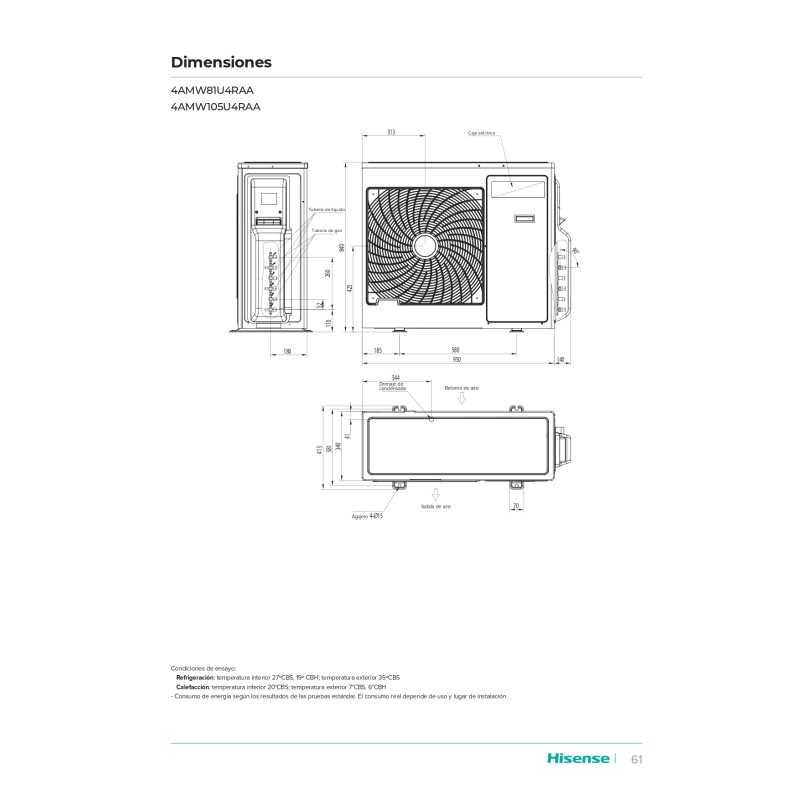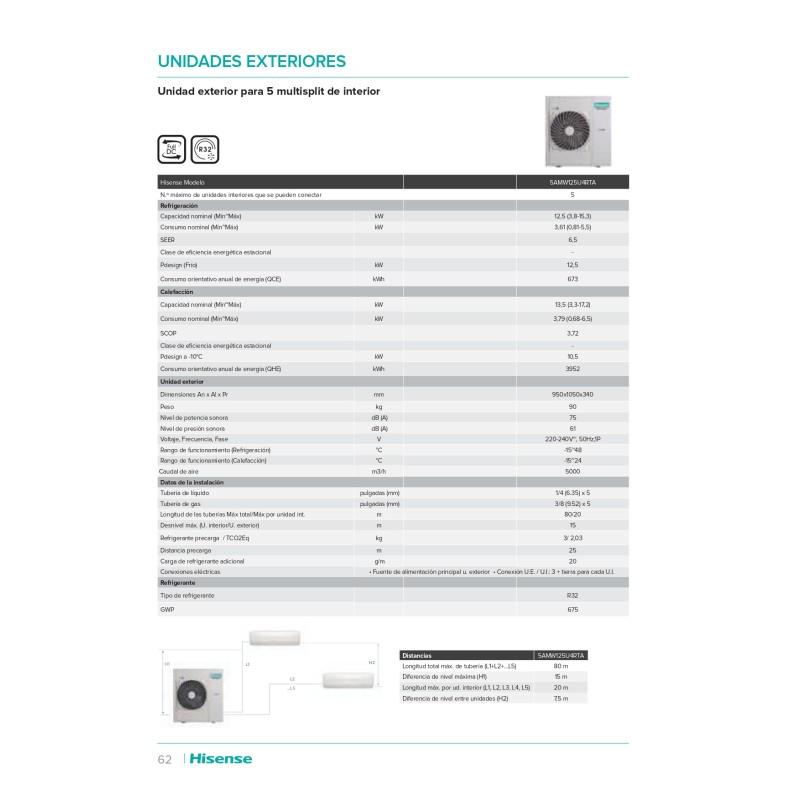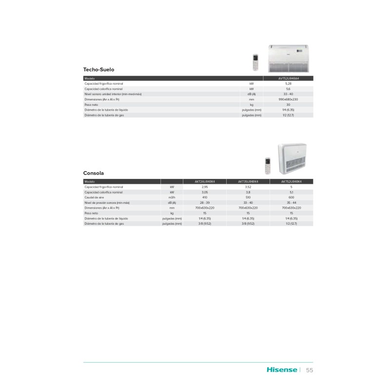 El aire acondicionado Hisense AUV90UR4RFB4 es una unidad suelo-techo con una enorme capacidad de 7568 Frigorías/h (en frío) y 7740 Kcal/h (en calor), adecuada para locales de hasta 70m2. Posee una alta eficiencia energética con una clasificación A++/A+, está equipada con tecnología Inverter y está fabricada con el nuevo gas R32.