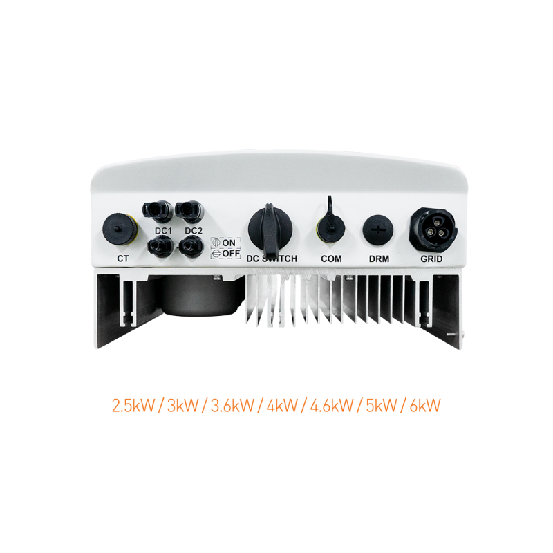 • El inversor Solar S6 5kW 2MPPT DC/AC también ofrece un diseño fácil de instalar. Está diseñado para ser conectado a la fuente de energía de la vivienda con los cables adecuados en su parte trasera. Se incluyen conexiones de seguridad extra para evitar cualquier posible problema en la conexión.