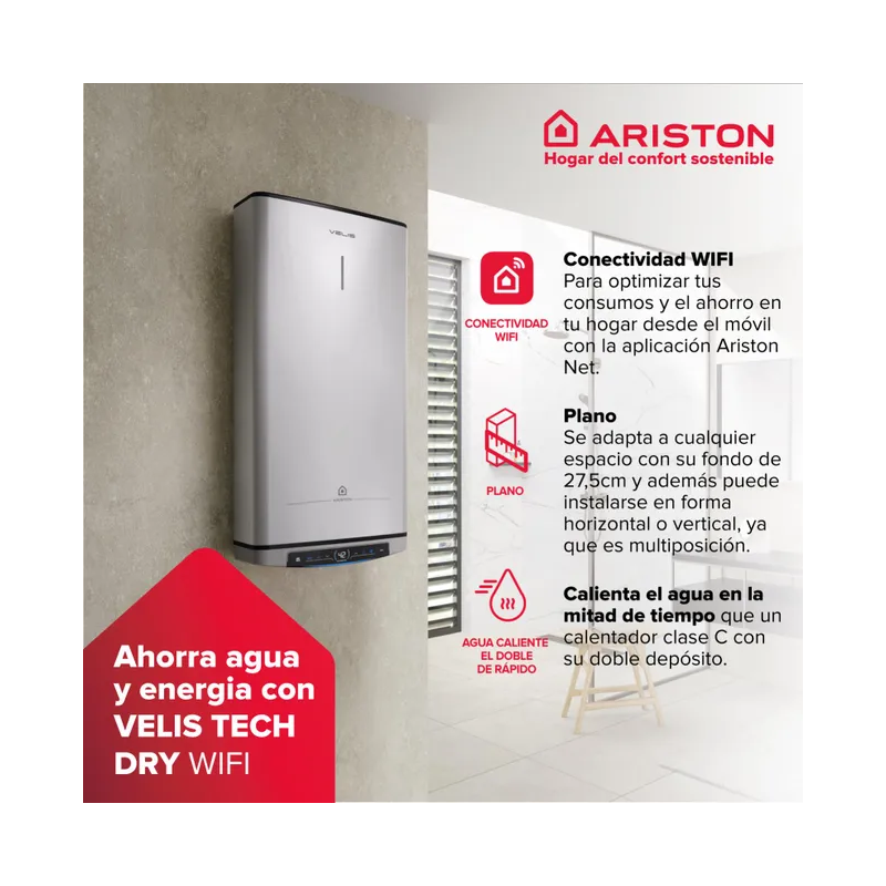 Termo eléctrico Velis Tech Dry Wifi 50 litros de Ariston
