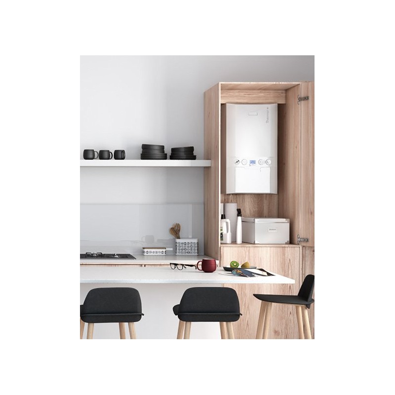 Diseño compacto: con un tamaño de solo 700 mm de altura x 395 mm de ancho x 278 mm de profundidad, esta caldera es muy compacta y no ocupa mucho espacio en tu hogar.